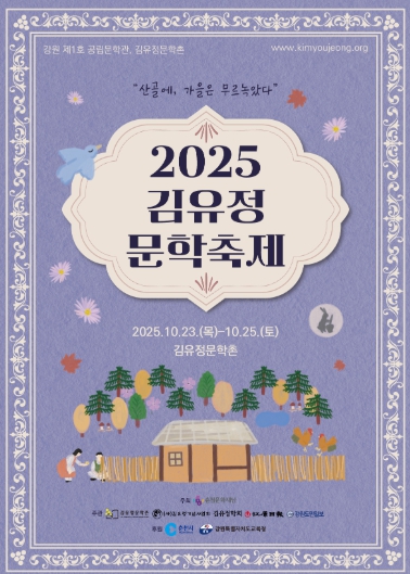 [무한뉴스=정민정 기자] 가을빛이 깊어가는 신동면 실레마을에 문학의 향기가 물든다. 한국 근대 단편문학의 거장 김유정을 기리는 ‘2025 김유정문학축제’가 오는 23일부터 25일까지 김유정문학촌 일원에서 열린다.