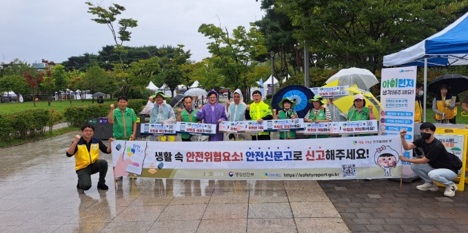또한, 캠페인 현장에서는 안전신문고에 신고할 수 있는 큐알코드가 포함된 안내문과 홍보물품을 배부하고, 현수막과 홍보 피켓을 전시하여 시민들의 관심을 끌었다.