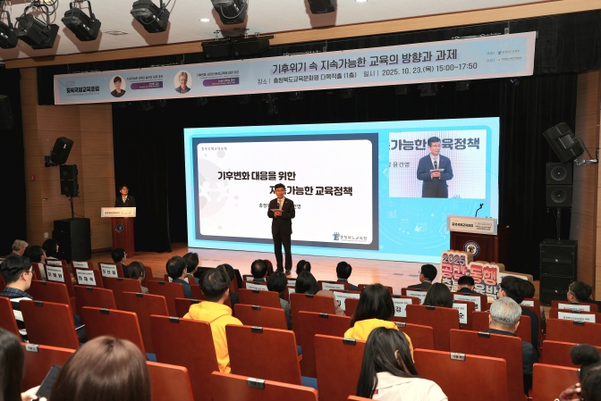 [무한뉴스=정승훈 기자] 충청북도교육청은 23일, 교육문화원 다목적홀에서 기후위기 속 지속가능한 교육의 방향과 과제를 주제로 2025. 충북국제교육포럼을 개최했다.