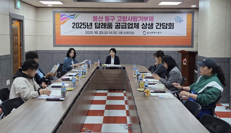 [무한뉴스=최진수 기자] 울산 동구는 10월 23일 오후 2시 동구청 소회의실에서 고향사랑기부제 답례품 공급업체 상생 간담회를 개최했다.