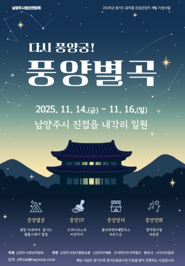 시 관계자는 “풍양궁은 조선의 숨결이 남아 있는 남양주의 귀중한 역사문화 자산으로, 이번 축제를 통해 시민과 관광객이 그 가치를 함께 느끼는 계기가 되길 바란다”며 “앞으로도 지역의 역사문화 자원을 적극 발굴해 남양주시만의 차별화된 관광 브랜드를 만들어가겠다”고 밝혔다.