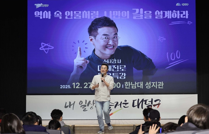 [무한뉴스=정민정 기자] 대전 대덕구는 지난 27일 한남대학교 성지관에서 한국사 스타강사 최태성 씨를 초청해 ‘미래진로 교육특강’을 성황리에 마무리했다.