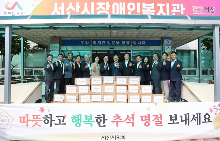 [무한뉴스=양현명 기자] 서산시의회는 지난 26일 추석 명절을 앞두고 관내 복지시설을 방문해 위문품을 전달하고 명절의 따뜻함을 나눴다.