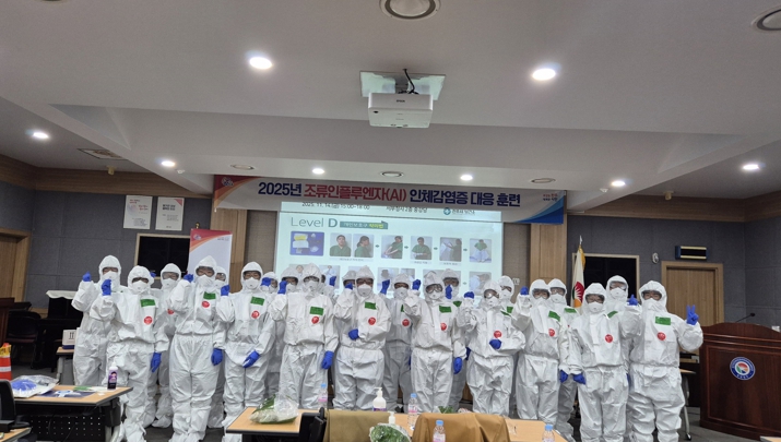 이번 훈련은 겨울철 AI 유행에 대비한 신속한 대응을 위해 보건소 및 축산 부서 직원, 의료기관 감염 담당자 등 50여 명을 대상으로 ▲교육강연 ▲실행기반 훈련 ▲실습기반 훈련의 3단계로 진행했다.