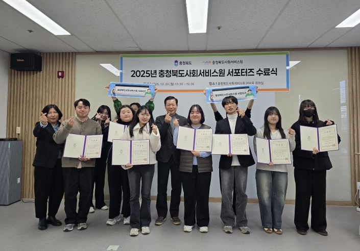 [무한뉴스=정민정 기자] 충청북도사회서비스원(이장희 원장)은 12월 22일 오후 3시 30분, 충청북도사회서비스원 회의실에서 2025년 서포터즈 수료식을 개최했다.