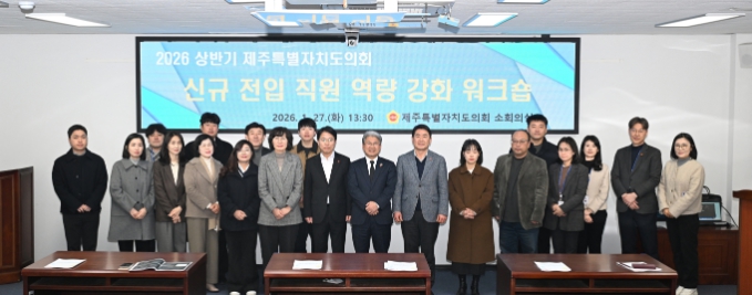 [무한뉴스=정민정 기자] 제주특별자치도의회 의회운영위원회는 지난 1월 27일, 도의회 의사당 소회의실에서 2026년 상반기 정기인사로 전입한 직원 및 실무 역량 배양이 필요한 직원들을 대상으로 ‘역량 강화 워크숍’을 개최했다.
