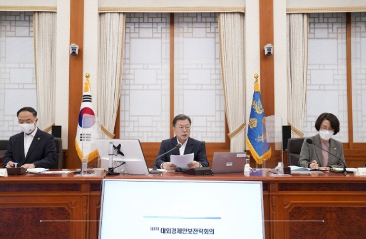 ▲문재인 대통령은 14일 청와대에서 열린 대외경제안보전략회의를 주재하고 있다. [사진=청와대] |