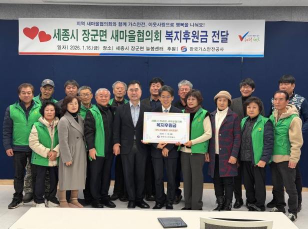 한국가스안전공사는 이날 세종시 장군면 새마을협의회에 복지후원금을 전달했다. 세종시새마을회는 지역 봉사와 생활환경 개선, 주민 지원과 나눔 활동을 꾸준히 이어오고 있다.