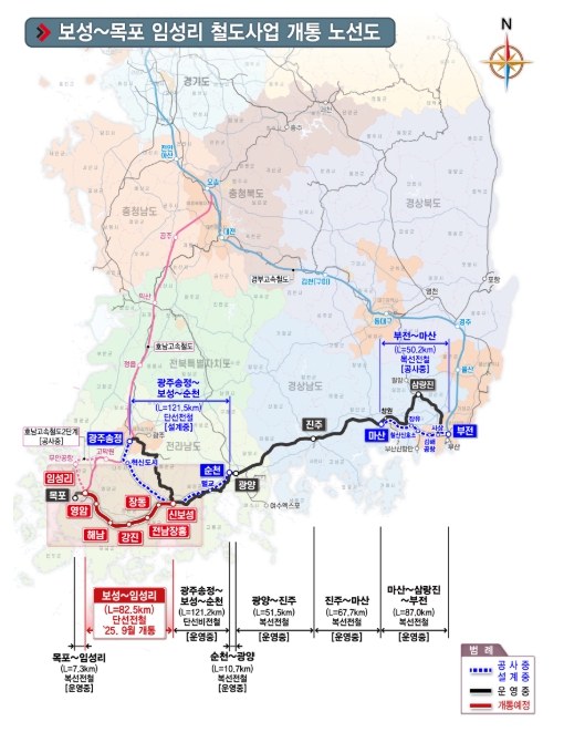 ‘보성~목포 철도건설사업’은 신보성역과 목포 임성리역을 잇는 82.5km 구간을 신설하는 사업으로, 총사업비 1조 6,459억 원을 투입했다.