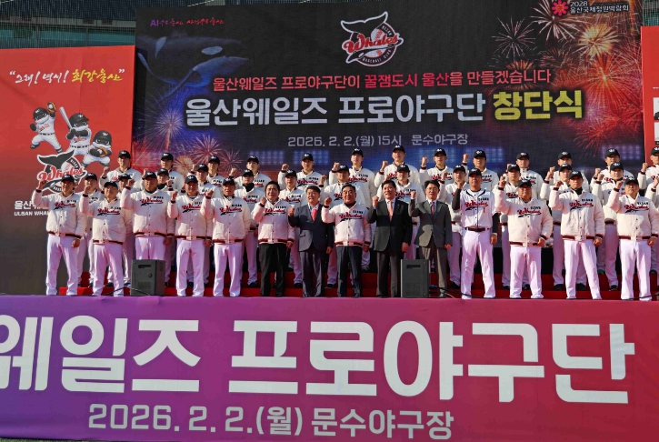 [무한뉴스=최진수 기자] 울산광역시(시장 김두겸)는 2월 2일(월) 울산 문수야구장에서 '울산 웨일즈' 공식 창단식을 개최했다.