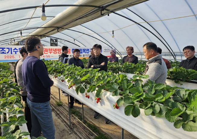 현장평가회에서는 딸기 재배농가, 연구 및 지도기관 관계자 등 200여 명이 참석한 가운데, 여름철 고온기에도 안정적으로 꽃눈분화를 유도할 수 있는 ‘조기정식 후 관부냉방 기술’의 적용성과 현장사례를 공유했다.
