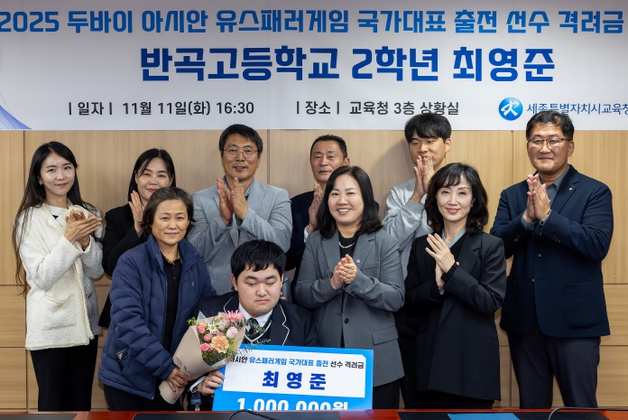 [무한뉴스=정민정 기자] 세종특별자치시교육청은 반곡고등학교 2학년 최영준 학생이 12월 7일부터 14일까지 아랍에미리트 두바이에서 열리는 ‘두바이 2025 Asian Youth Para Games(아시안 유스패러게임)’ 뇌병변장애(F33) 원반던지기 종목에 국가대표로 출전함에 따라 함께 축하하고 격려했으며, 지원금 100만 원을 전달했다고 밝혔다.