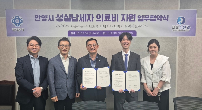 [무한뉴스=정승훈 기자] 안양시는 지난달 30일 오후 2시30분 3층 기획경제실장실에서 관내 의원인 서울수안과와 ‘성실납세자 의료비 지원’ 업무협약을 체결했다고 1일 밝혔다.
