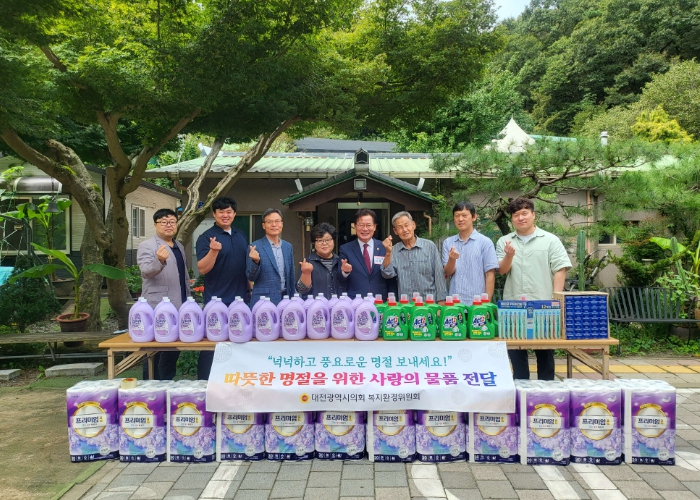 [무한뉴스=정민정 기자] 대전시의회 복지환경위원회가 추석 명절을 앞두고 22일 서구 장안동에 위치한 사회복지시설인 삼보실을 방문해 위문품을 전달하고 시설 관계자들을 격려했다.