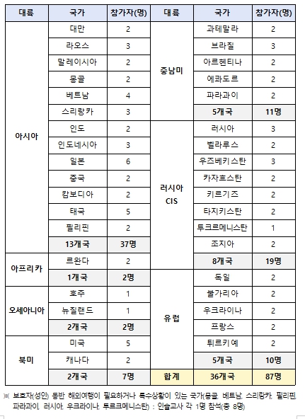 | ▲ 2025년 해외 청소년 한국어교육 연수 대륙·국가별 참가 현황 |