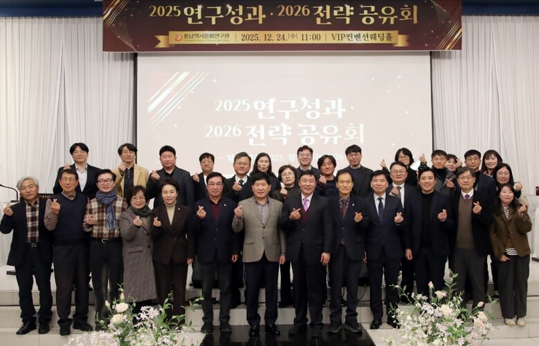 [무한뉴스=정민정 기자] 충남역사문화연구원은 24일 오전 11시 공주 브이아이피웨딩홀에서 ‘연구원 성과·전략 공유회’를 열고 2025년 주요 성과를 공유하는 한편 2026년 추진 전략을 대내외에 제시했다.