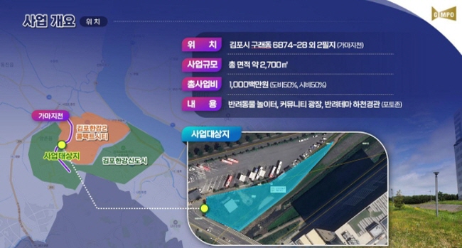 김병수 김포시장은 “김포시 하천이 단순 여가공간을 넘어 시민과 반려동물이 함께 누리는 생활밀착형 문화공간이자 지역경제를 견인하는 복합거점공간으로 거듭나는 계기가 될 것”이라며 “수변경관과 어울리는 공간 구성으로 새로운 하천문화를 창출해 나갈 것”이라고 말했다.