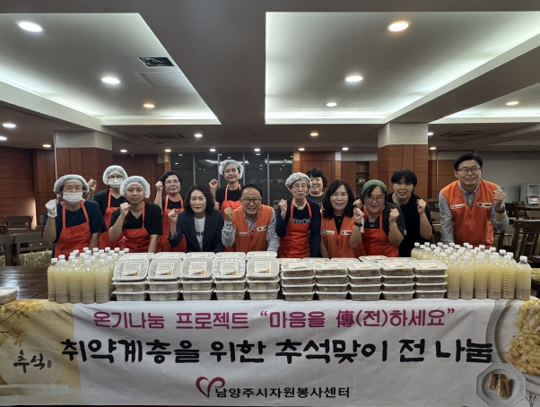 [무한뉴스=정승훈 기자] 남양주시자원봉사센터는 추석맞이 집중 주간을 맞이하여 9월 25일부터 오는 10월 3일까지 약 1,300명의 관내 취약계층을 대상으로 ‘추석맞이 전 나눔 활동’을 펼쳤다.