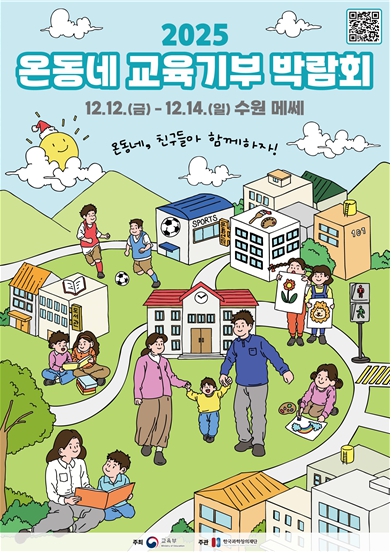 [무한뉴스=정승훈 기자] 교육부와 한국과학창의재단(이사장 정우성)은 12월 12일부터 12월 14일까지 수원 메쎄(경기도 수원시)에서 ‘2025년 온동네 교육기부 박람회’를 개최한다.