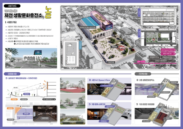 이 사업을 통해 제천시문화회관은 기존 공연장 기능을 강화하고, 제천의 생활문화 거점 공간으로서 복합 기능을 추가한다. 우선 관람객 편의성 제고를 위해 로비를 확장할 예정이며, 쾌적한 관람 환경 조성을 위한 계획을 수립했다.