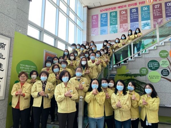 김금희 소장을 비롯한 직원 50여명은 이날 군 보건소 로비에 함께 모여 엄지손가락을 편 오른손을 왼손으로 바치는 수어 동작을 하며 ‘덕분에 챌린지’를 진행했다.