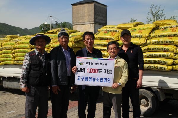 [무한뉴스] 유기질비료 등 생산업체인 영동군 추풍령면 소재 고구름영농조합법인이 지난 8일 추풍령급수탑공원을 방문해 400만원 상당의 퇴비 1,000포를 기증했다.