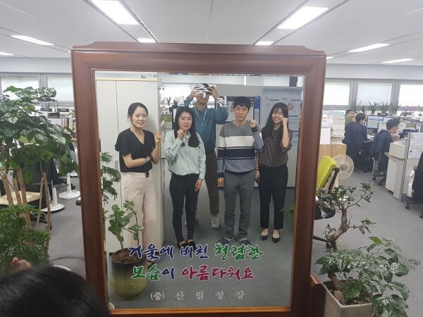 청렴 거울에는 ‘거울에 비친 청렴한 모습이 아름다워요’란 문구가 적혀 있는데, 직원 등이 청렴 의식을 다시 한 번 되짚을 수 있도록 유도했다.