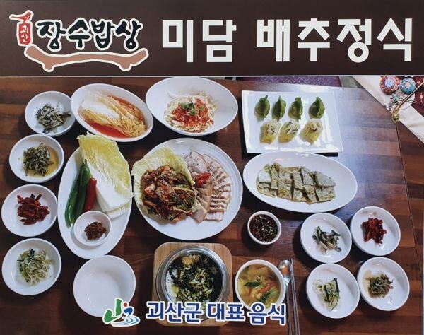 특히 배추정식은 괴산의 대표 특산품인 배추와 건강한 식재료를 결합해 만든 장수밥상으로 귀한 손님에게만 대접했던 보쌈김치를 돼지고기수육과 함께 배추메밀전, 배추만두, 배추우거지 솥밥 등 다양한 배추 요리로 이뤄진 메뉴다.
