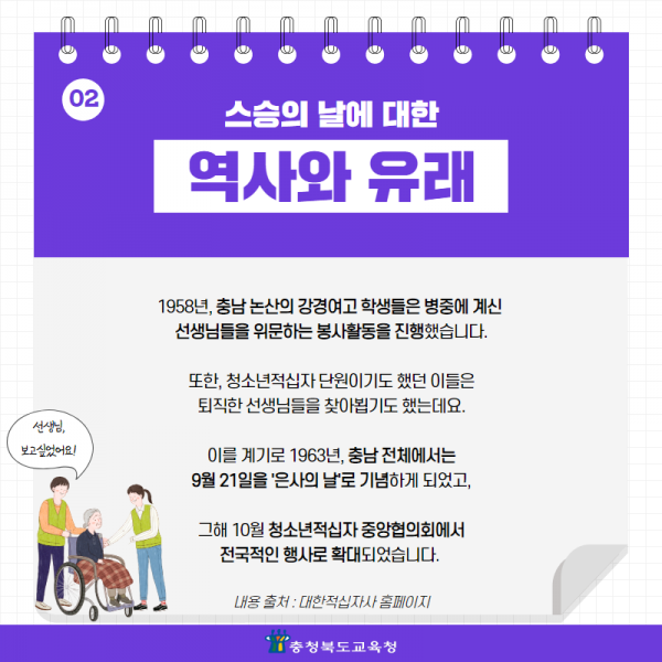 이와 함께 스승의 날 기념일에 대한 역사와 유래, 교원 존중에 대한 의식 함양 등의 내용이 담긴 카드뉴스를 제작해 도교육청 홈페이지, 페이스북, 블로그 등에 탑재해 스승의 날 의미를 되새겼다.