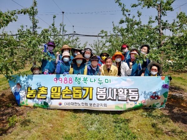 [무한뉴스] 보은군 9988행복나누미 참여 강사 13명은 15일 삼승면 천남리 일대 과수 농가를 찾아 사과 꽃따기 등 일손 돕기에 나섰다.