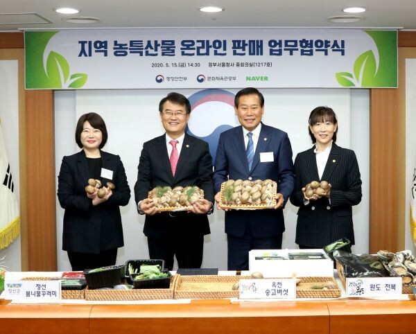 지난 15일 정부서울청사에는 김재종 옥천군수, 행정안전부 윤종인 차관, 문화체육관광부 최윤희 제2차관, 인터넷 쇼핑몰 관계자가 참가해 지역 농특산물 온라인 판매 업무협약을 체결했다.
