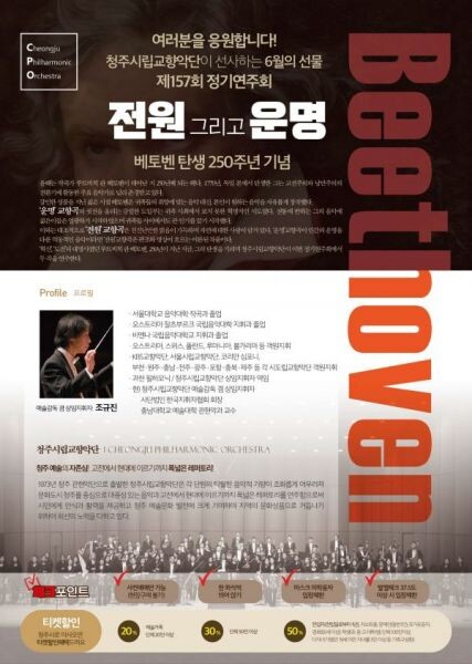 [무한뉴스] 청주시립교향악단이 오는 6월 4일 저녁 7시 30분 청주예술의전당 대공연장에서 제157회 정기연주회‘전원 그리고 운명’을 선보인다.