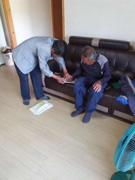 사전에 전화로 신청하면 자택에 찾아가 긴급재난지원금 접수를 받고 추후에 전담 인력이 직접 선불카드를 전달한다.