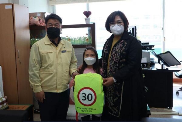 가방안전덮개는 아이들의 책가방에 씌워 사용하는 덮개형 홍보물로 속도제한구역 표시와 함께 어린이 보호구역 제한속도가 쓰여 있으며 형광색 바탕으로 인해 주·야간에도 시인성이 좋아 등하교길 아이들의 안전을 한층 더 높여줄 전망이다.