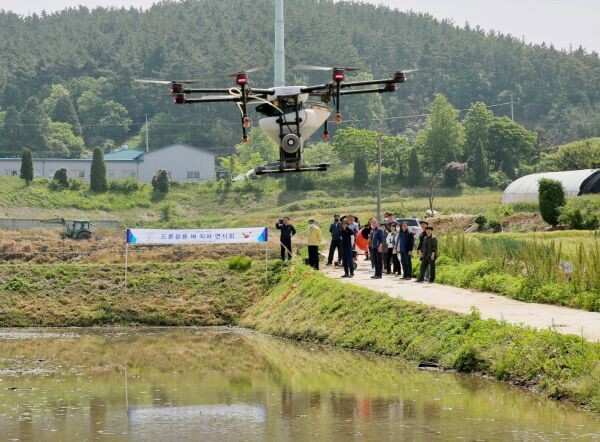 이번 연시회는 ‘농업용 드론을 활용한 벼 담수 직파 재배기술’을 확대해, 벼농사 노동력을 절감하고 농가소득을 증대하고자 마련됐다.