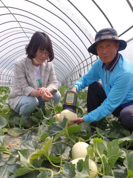 이에 센터는 소비자 맞춤형 과채단지 조성시범사업을 통해 생산 현장에서 직접 당도를 측정한 후 성숙기를 판단해 수확할 수 있도록 휴대용 비파괴 당도계를 보급하고 15브릭스(°Brix) 이상의 수신멜론을 출하할 수 있도록 돕고 있다.