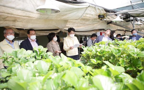 이어 맹 시장은 성연면 고남리 시설채소 무인방제 시스템 시범사업 현장도 방문해 시범 사업 추진 상황을 점검하고 애로사항을 청취했다.