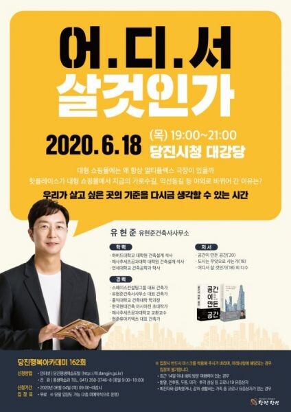 [무한뉴스] 162회차 당진행복아카데미가 오는 18일 저녁 7시 당진시청 대강당에서 ‘어디서 살 것인가’를 주제로 건축가 유현준 강사를 초청해 열린다.