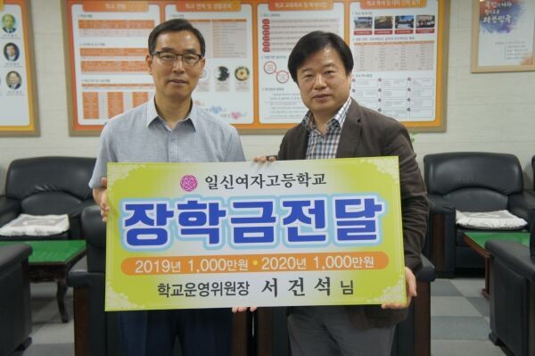 [무한뉴스] 일신여자고등학교는 서건석 학교운영위원장이 9일 일신여고를 방문해 장학금 1,000만원을 기탁했다고 밝혔다.