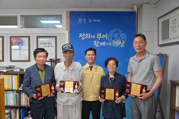 [무한뉴스] 부여군은 지난 9일 군수집무실에서 지역사회 발전 및 보훈문화 활성화에 앞장서 공헌이 지대한 모범 보훈가족 4명에게 군수 표창장을 수여했다.