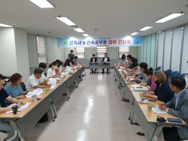 [무한뉴스] 청주시는 16일 민·관이 상생하는 건축행정 추진을 위해 청주시 건축사협회 임원들과 4개구 건축업무 담당자 등 40여명이 참여한 가운데 간담회를 개최했다.