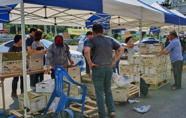 [무한뉴스] 지난 19일부터 21일까지 사흘간 충북 괴산군 감물면 감물신협 앞 광장에서 열린 감자 직판행사가 성황리에 끝났다.