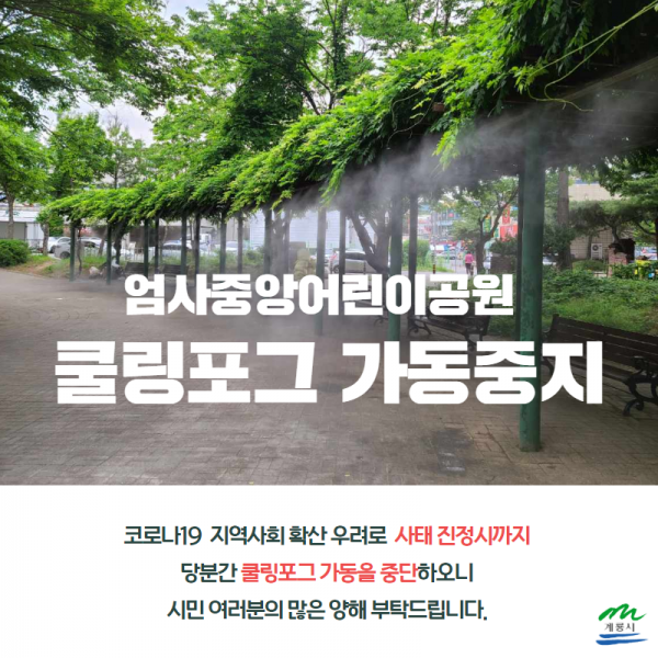 [무한뉴스] 계룡시가 엄사중앙어린이공원에 설치한‘쿨링포그 시스템’을 코로나19 사태 안정 시까지 당분간 가동 중지하기로 긴급 결정했다.