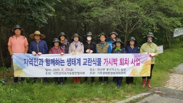 [무한뉴스] 서천지속가능발전협의회 사무국은 지난 26일 기후생태환경분과위원회 주관으로 물버들로 유명한 동부저수지에서 지역생태계 교란종 ‘가시박’ 퇴치 활동 및 환경정화 활동을 전개했다고 밝혔다.