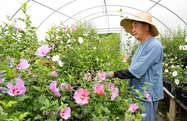 그는 4958㎡ 면적의 농장에서 120여종의 무궁화를 5000여분에 재배하고 있으며 한그루에서 2종, 3종, 5종의 꽃을 피우게 해 찾는 이들의 발길이 이어지고 있다.