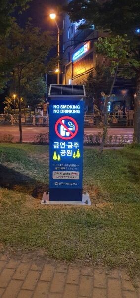 주민들이 야간시간대에 기존의 현수막이나 표지판으로는 금연구역 분별이 어렵다는 점 등을 이유로 안내 표시를 잘 볼 수 있도록 태양광 LED로 제작해 설치했다.