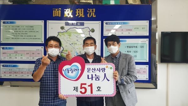 [무한뉴스] 서천군 문산사랑후원회는 지난 7일 홀몸 어르신과 면민들을 위해 써달라며 후원금 100만원을 기탁한 두리식당 함흥식 사장을 ‘문산 사랑 나눔인 제51호’로 선정했다.