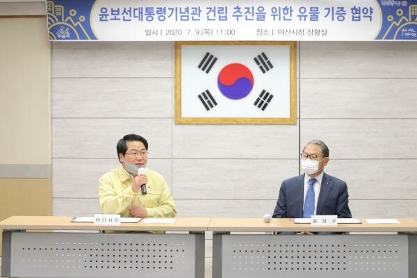 [무한뉴스] 아산시가 7월 9일 시청 상황실에서 윤보선 대통령기념관 건립 사업을 위해 윤보선 전대통령 후손과 유물 기증 업무 협약을 체결했다.