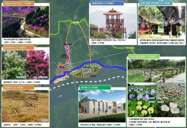 또한, 쉼표정원은 온 가족과 함께 즐길 수 있는 세대통합 수변친화 공간조성을 목표로 수생식물 관찰원, 생태전망대, 진달래이야기길, 칠자화 단지, 숲속네트 어드벤처, 갈대단지, 관리동 등을 2021년부터 2023년까지 3년간의 사업기간으로 조성할 계획이라고 전했다.