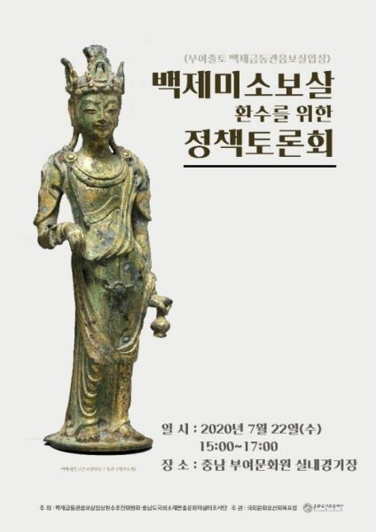 부여군과 충청남도가 후원하고 국회문화유산회복포럼·문화유산회복재단이 주관하는 백제미소불 환수를 위한 정책토론회가 오는 22일 오후 3시 부여유스호스텔 실내경기장에서 열린다.